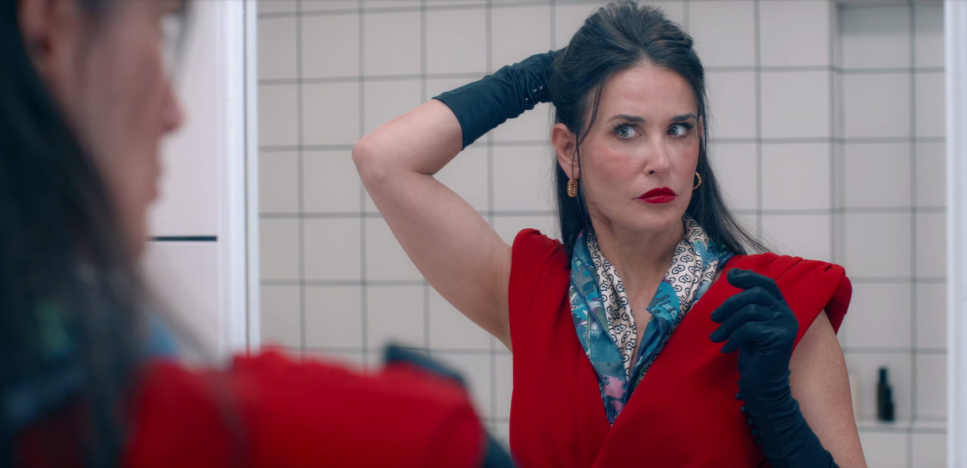 Instead of the utterly sugarcoated Hallmark romance movies, I think The Substance would be a perfect tool for couple therapy and also for understanding each other’s needs, anxieties, and moods. I mean it. Sometimes, a wake-up call is necessary and highly valued. Perhaps eyelids clamps will be handy in the case where an individual rejects to acknowledge that youth and beauty are the only things worth having, so vain we are. And how much self-loathing we have. Demi Moore’s character in the film has a moment that is quieter and truly effective. She is asked out on a date and spends a considerable amount of time getting ready for it. There’s a lot of standing in front of the mirror, examining her skin and noticing how it no longer looks supple, observing the wrinkles, and then looking at her entire body. I admire how that very quiet and somewhat introspective moment in the film effectively conveys that point.